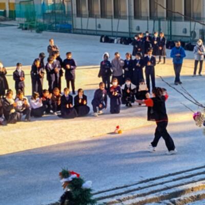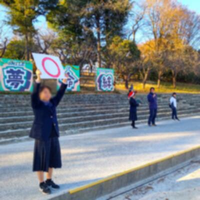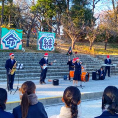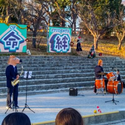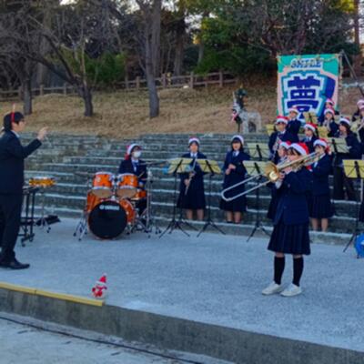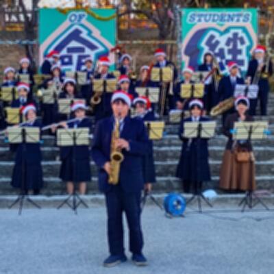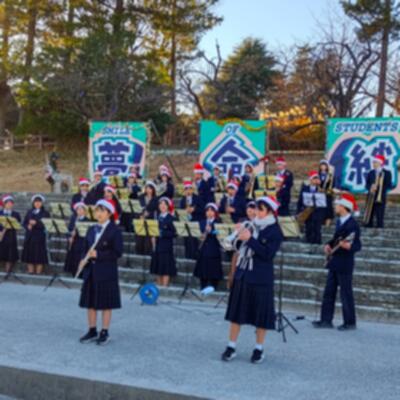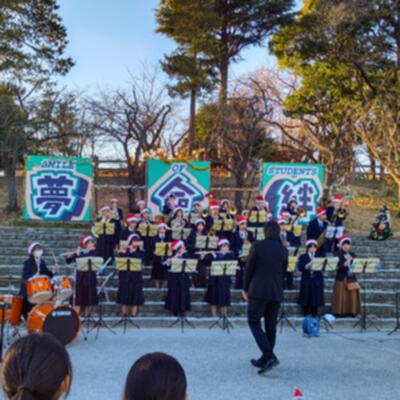 見事に晴れた冬の青空が少しずつ夕焼けに近づくなか、トリを飾るのはやっぱり、吹奏楽部。
