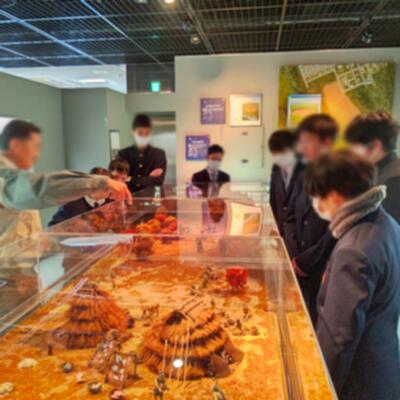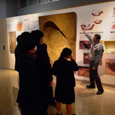 縄文時代の土器や貝塚、人や犬の骨、暮らしの再現など、見るもの聴くもの珍しくてみんな興味津々。