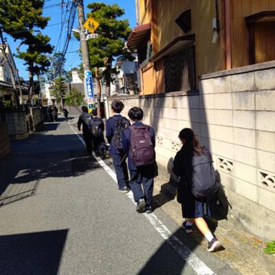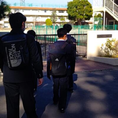 自分たちで立てた計画にしたがって、グループごとに学校を出発。