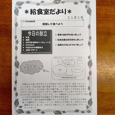 今日11月8日は「いい歯の日」…ということで、噛み応えのあるメニューを揃えたカミカミ献立です。