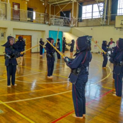 体育館を半分に分けて、創作ダンスと剣道の実践…選択制です。