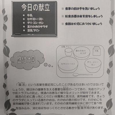 今日の給食 投稿日時 : 2024/11/15 第二中学校管理者 チリ・コン・カン ひき肉・たまねぎを炒め、そこにいんげん豆などの野菜を加え、トマトや香辛料で煮込んだ代表的なメキシコ料理のチリ・コン・カン。 柔らかく煮込まれたニンジンやじゃがいもに、豆の食感と香辛料の香りがアクセントになり、エスニックな味わいです。 ↓「いいね!」を押して、二中生と二中の取組を応援してください !(^^)! {{options.likeCount}} {{options.likeCount}}