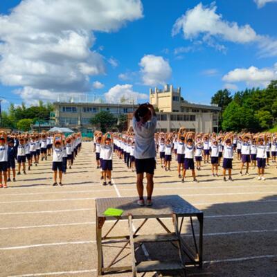 昨夜の荒天がウソのような快晴に恵まれて、2日後に迫った体育祭に向けて、予行が行われました。