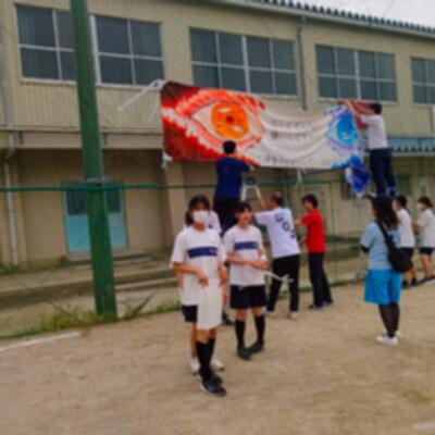 美術部が作製してくれた、スローガンが入った横断幕です。