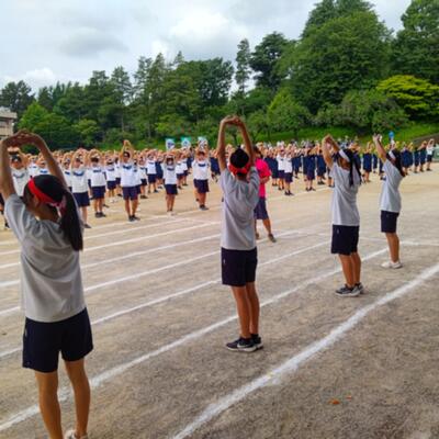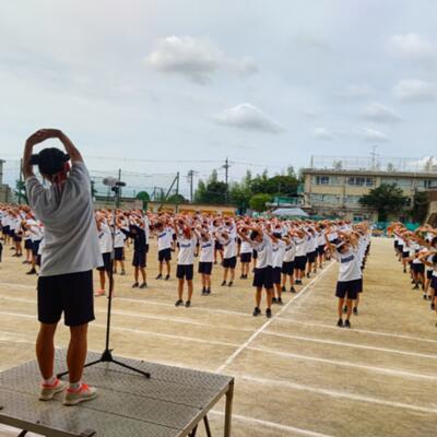 昨夜の荒天がウソのような快晴に恵まれて、2日後に迫った体育祭に向けて、予行が行われました。