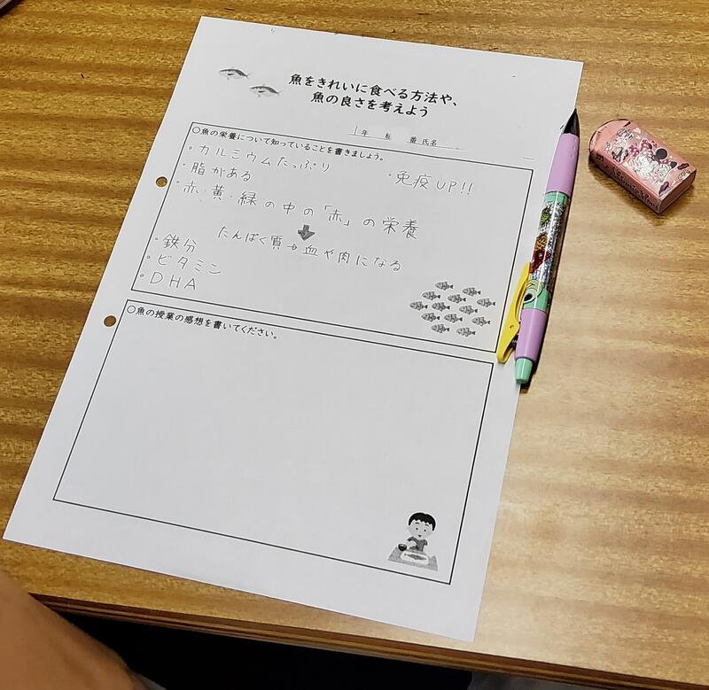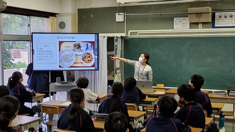 栄養教諭の近田先生が1年生の家庭科の授業を行いました。