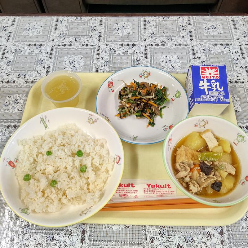 白百合学級のみんながさや剥きをした、グリーンピースの炊き込みご飯です✨