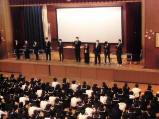 | ☆全校生徒が体育館に集まりました。 | ☆前期 委員長の反省 | ☆「桜歌祭」について(桜歌祭実行委員長) |