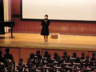 卒業生の皆さん、三中はいつも、夢の実現のために頑張るあなたの味方です。いつでも応援しています。保護者の皆様、地域の皆様、第三中学校へのご支援ありがとうございました。