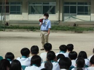 校長先生からは、「自分を大切に、他人も大切にしてほしい」、「明日から長い間、学校は休みになりますが、多くのことにチャレンジして、有意義な夏休みにしてほしい…」という激励の話がありました。