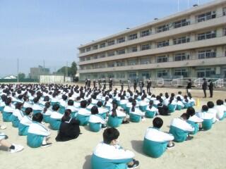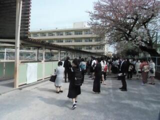 桜が満開の校庭に集まり、明るい挨拶で新年度が始まりました。今日から、新たな三中が始まります。3年生は最高学年として、2年生は中堅学年として、
