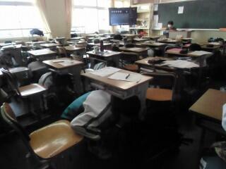 ☆校長先生より ☆シェイクアウトの確認 (まず低く 頭を低く 動かない)