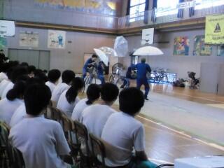目の前で、重大な交通事故が発生し、その様子を観察しながら、恐怖とともに、改めて自転車のルール違反がいかに危険であるか、また、命の大切さを考える機会となりました。近年、自転車の乗り方やマナーが問題視されていますが、今日の体験が交通事故の抑制と今後の交通安全につなげていけそうです。スタントマンのみなさま、貴重な体験をさせていただき、ありがとうございました。