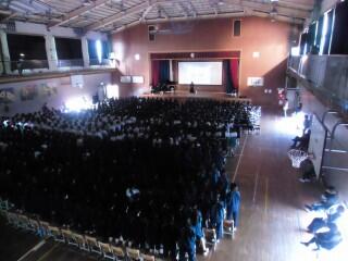 5年ぶりに体育館での開催となった三年生を送る会は、全校生徒が集まり盛大に行われました。