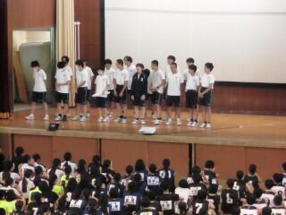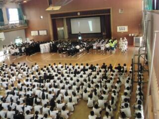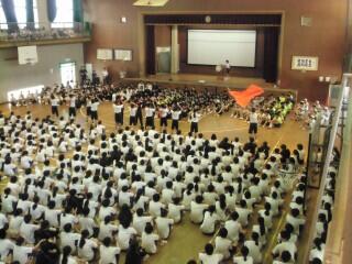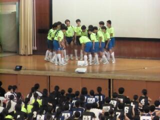 壮行会の最後は、応援団による盛大なエールを送り、場を盛り上げました。三中のこれからの活躍が楽しみです。