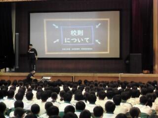 校則検討委員会で話し合って決まった「新しい校則」を発表しました。来年度から制服も新しくなりますが、校則についても、多くの変更があります。具体的な変更点につきましては、ホームページ等でお知らせいたしますので、ご確認ください。