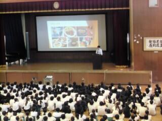 | ☆全校生徒が体育館に集まりました。 | ☆前期 委員長の反省 | ☆「桜歌祭」について(桜歌祭実行委員長) |
