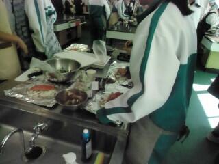 | ☆家庭科 調理実習 メニュー「ちゃんちゃん焼き・酢の物」 | ||