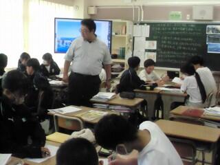 わかりやすい授業を目指して、授業改善に取り組んでいます。各教科ごとに授業改善について、4月から計画的に話し合い、夏季休業中には講師の先生を招いて指導案の検討を行いました。そして、各教科ごとに、指導内容を十分検討したうえで本日の校内授業研に臨みました。