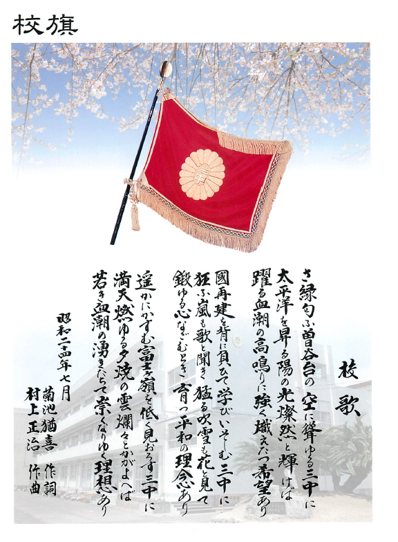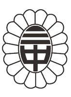 日本の古い伝統と誇り高い菊花の一輪を集めて、その中央に台を置き、その中に三中の字を入れてあります。
