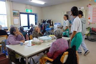 ☆大野中央病院、リハビリセンター 高齢者の笑顔に生徒達も笑顔になっています。 |