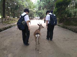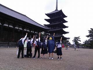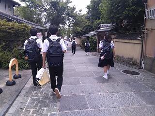 1日目、奈良の班別行動は傘を持っての出発となりましたが、計画通りに見学場所を回ることができたようです。2日目、朝から京都市内の班別行動では、慣れない場所での活動範囲も広がり、蒸し暑い一日ともなって、ホテル到着時には、いろいろな景色を見てきた達成感とやや疲労感が表情に表れていました。3日目は、各クラスで生八つ橋づくりや抹茶づくりの体験学習を行い、古都の文化に触れることができたのではないでしょうか。