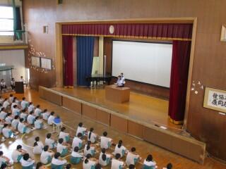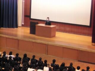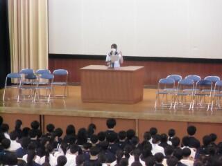 11月19日(水)生徒会役員・委員長・部長の引継ぎ式、保健委員会の発表(全校集会)