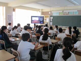 今年度の生徒総会は、「生徒主体」のもと、生徒会が中心となって企画・運営を行い、オンラインで行いました。総会では、委員会と部活動の昨年度の報告と今年度の活動と予算について審議されました。また、生徒提案も行われました。