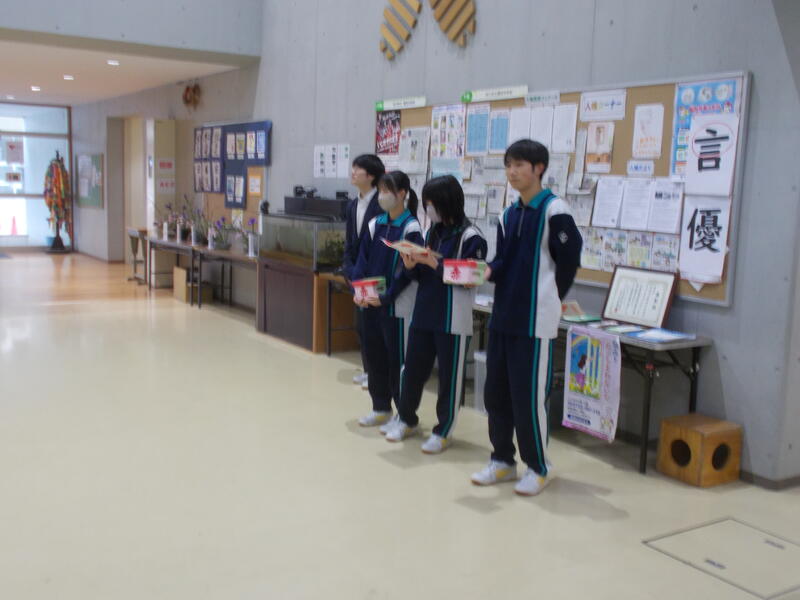 12月1日 生活委員会で赤い羽根募金の協力をお願いしました。地域福祉のために使われる募金です。