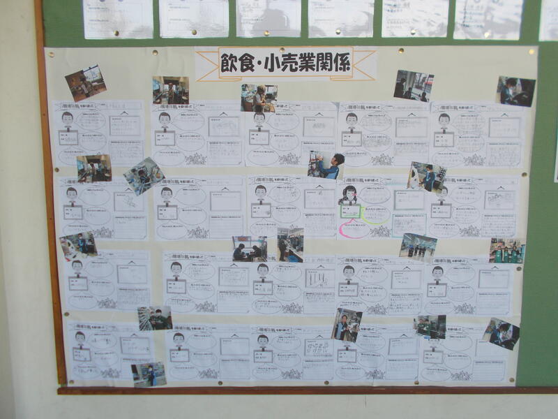 2年生が行った職場体験のまとめの掲示物を作成しました。