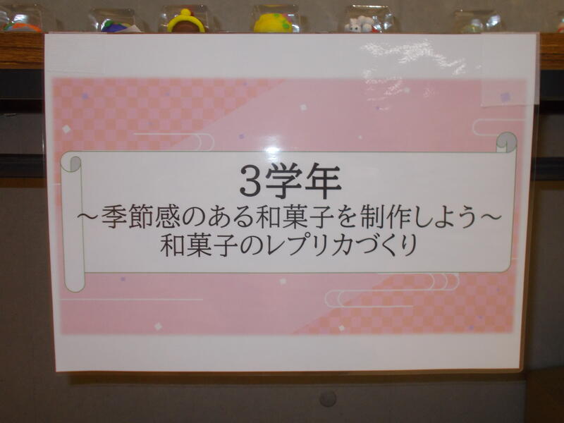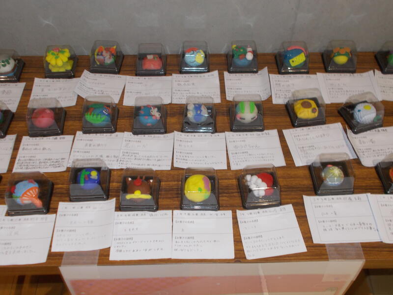 3年生は美術で、和菓子のレプリカを作成しました。どれもおいしそうにできています。