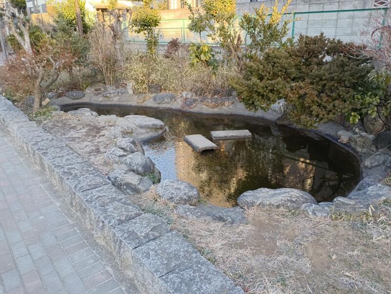 四中の池の水に氷が張っていました。