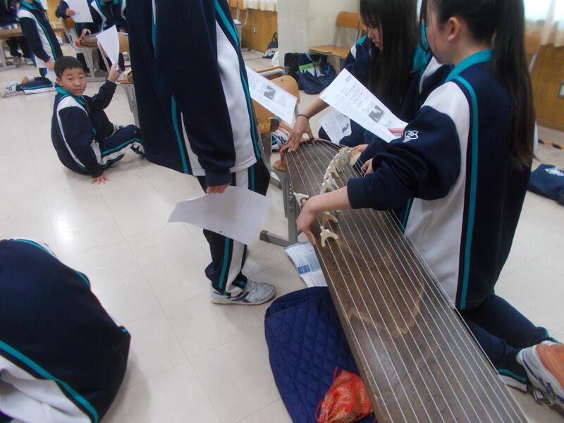 1年生の音楽では、琴の練習をしています。