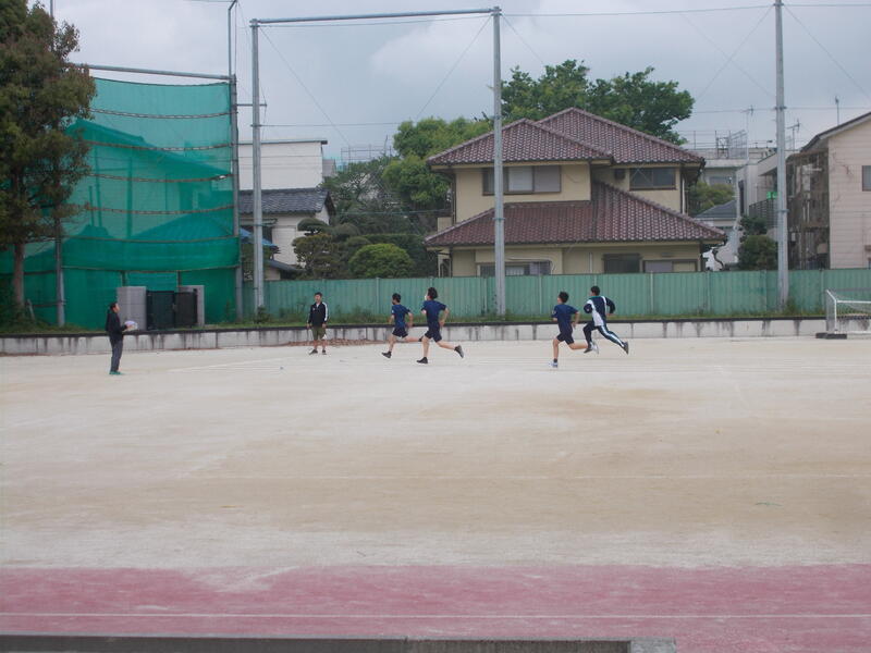 1年生の体育で、授業の初めに体育館を5周アップをしていました。