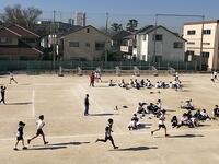 4月18日(木)天気が良いと昼休みに校庭で遊ぶ人がたくさんいます。