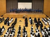 今日は定例です。1年123組の生徒達が体育科のダンス・柔道・剣道の研究授業を実施しました。