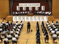 6校時、生徒会主催の全校生徒集会が開かれました。生徒会役員が会の司会進行を務めます。今日は、生徒会長から新しく決まった各専門委員長に任命証が手渡され、委員長より決意表明がありました。今後の専門委員会の活躍を期待しています。