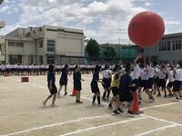 6校時は、今年度から導入される団体競技「大玉リレー」の練習です。全校が2チームに分かれて行います。
