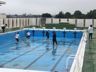 今日は、期末テスト初日でした。その裏でPTAの方々がプール清掃を行ってくれました。2年間使用していないプールは、汚れのひどいところもありましたが、あっという間にきれいになりました。PTAの皆様ありがとうございました!