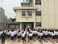 最後に全生徒・職員が委員長の掛け声に合わせこぶしを突き上げ気合を入れました。