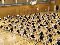 雨にも負けず、生徒たちは、体育館で淡々と取り組んでおります。