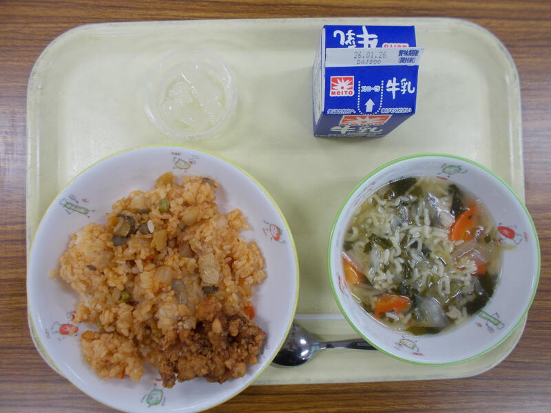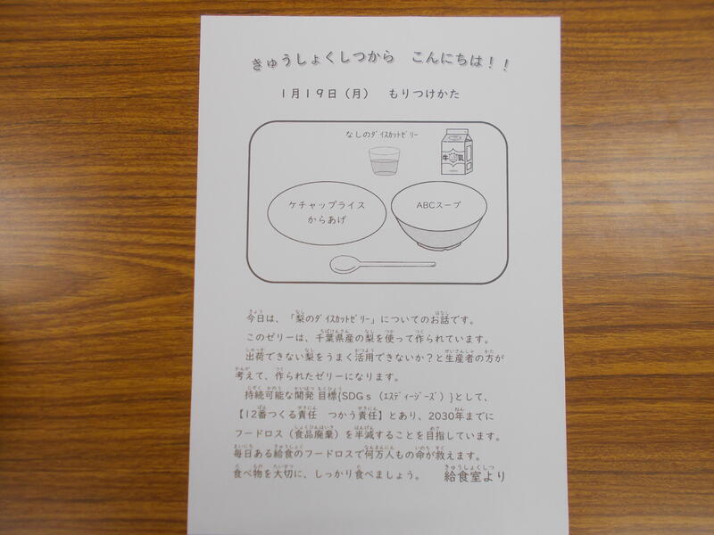 フードロスを減らすための取り組みです。それ以外の献立は、ケチャップライス、鶏のから揚げ、ABCスープ、牛乳