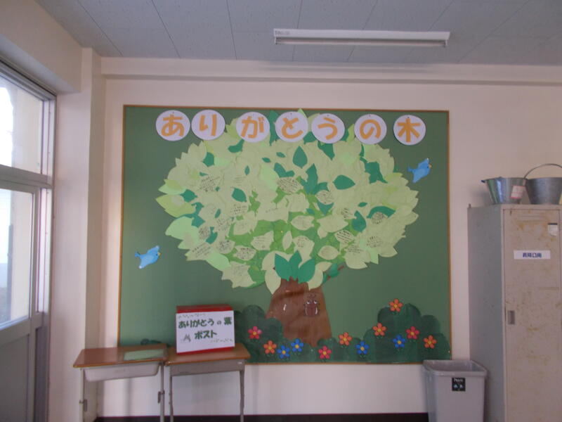 生徒会で、ありがとうの木の掲示物を作成しています。