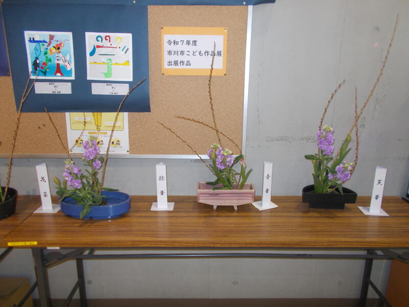 今月の生け花は、ストック、小豆柳、チューリップの3種類。