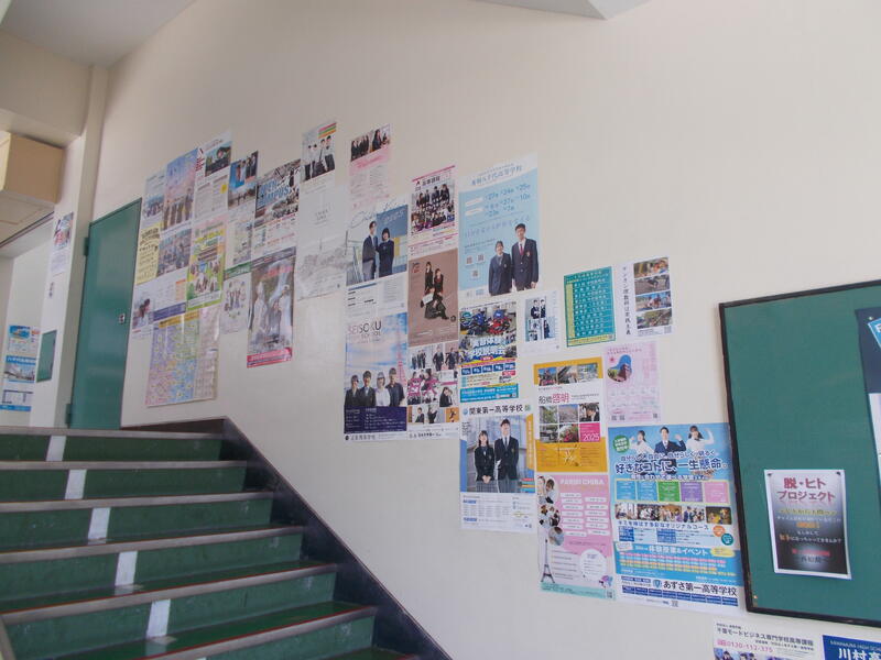 3年生の廊下や階段には、進路関係の掲示物がたくさんあります。