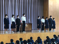 5校時に生徒集会が開かれました。今回は、生徒会役員の引継ぎ式及び新本部役員と専門委員長の任命式、各表彰式が行われました。
