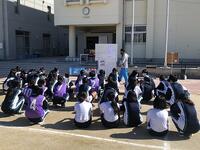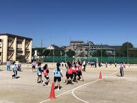 2時間目に第1学年の体育の授業でハンドボールの研究授業を行いました。晴天の中、生徒たちは真剣にボールを追いかけていました。