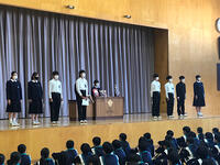 5校時に生徒集会が開かれました。今回は、生徒会役員の引継ぎ式及び新本部役員と専門委員長の任命式、各表彰式が行われました。