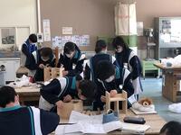 1年生の技術科木工の授業です。みんな真剣に各自の使用目的に合ったものを制作しています。