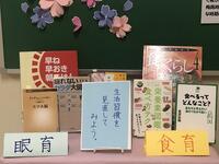 図書室前には、今年度推進している「食育」と「眠育」コーナーが図書委員会によって設けられています。